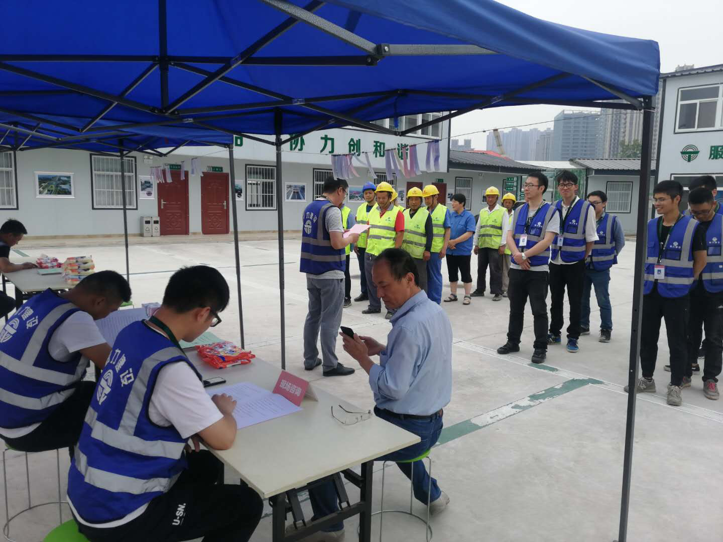 ★施工人員排隊參與現場(chǎng)宣傳活動(dòng)