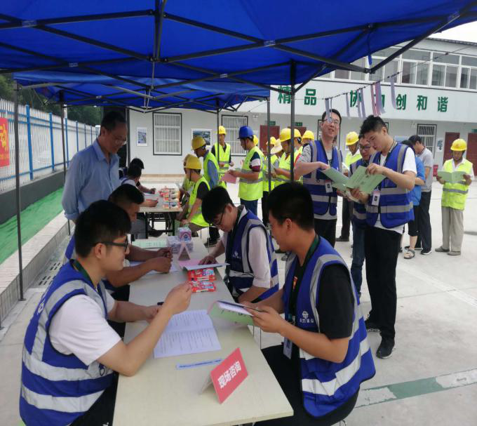 南京同力建設集團股份有限公司南京地鐵5號線(xiàn)土建施工TA07-2標項目部舉辦以 “防風(fēng)險、除隱患、遏事故”為主題的2019年“安全生產(chǎn)月”宣傳咨詢(xún)日活動(dòng),在全項目部唱響“安全生產(chǎn)”的主旋律,牢固樹(shù)立“安全第一、預防為主、綜合治理”的安全生產(chǎn)方針。